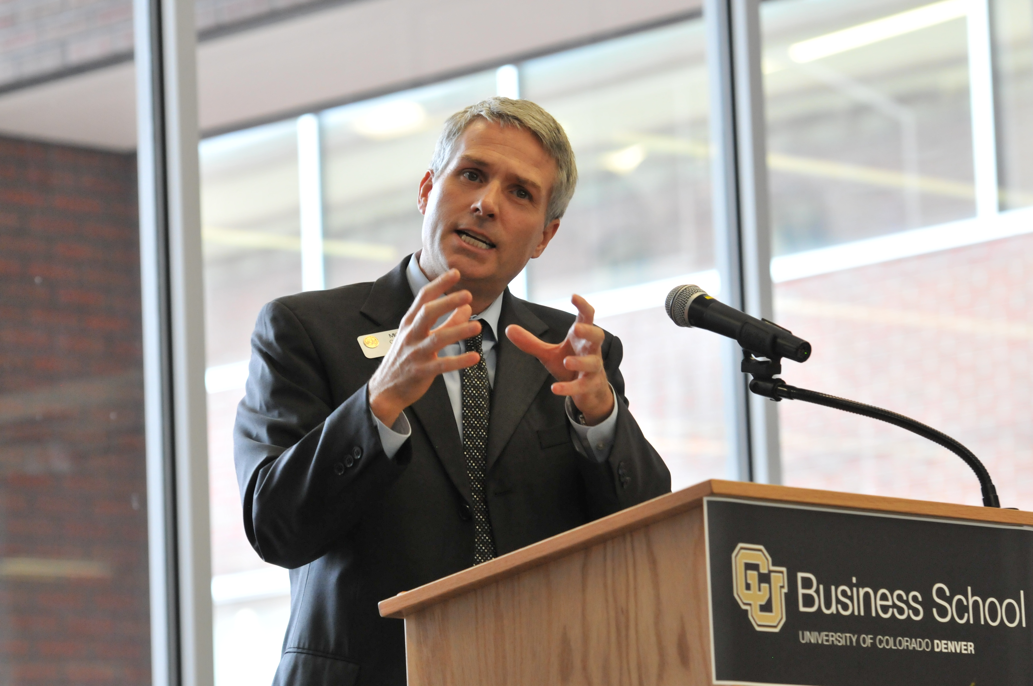 Benson said the new building links CU Denver to the city and the state, providing a “face of entrepreneurship and innovative programs.” He thanked the many donors and said the school provides a critical service and education link to the community. “This is entrepreneurship and private-public partnerships, which are what we really need in this state,” Benson said.