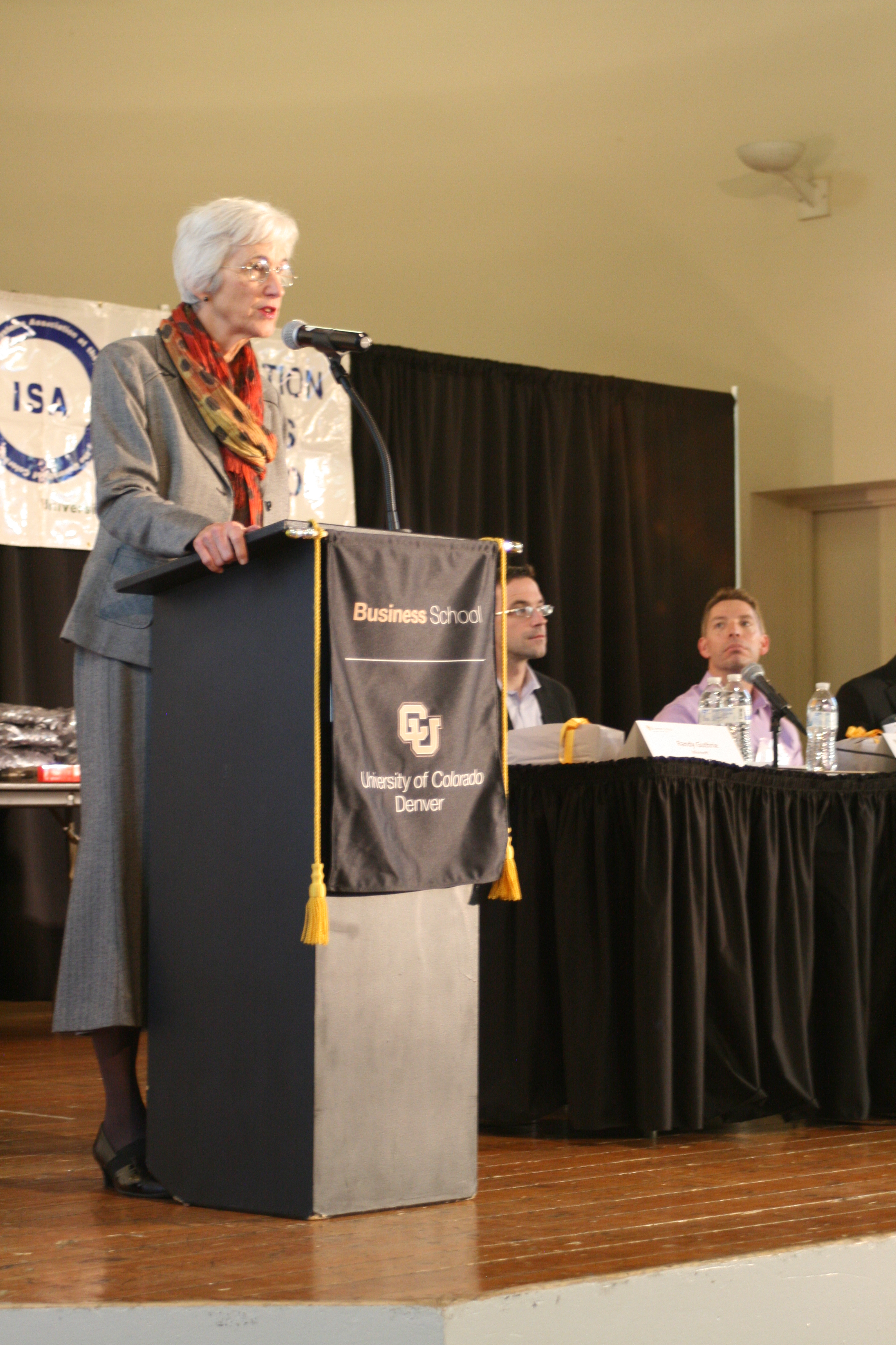 The panel featured moderator Ted Hellmuth, division director of the Denver office of Robert Half Technology and 2009 MBA graduate from CU Denver’s Business School; Gail Coury, vice president of risk management, Oracle; Alan Cullop, chief technology officer, DaVita; Mark Endry, senior vice president and chief information officer, Arcadis-United States; Randy Guthrie, Microsoft; Tim Rod, president of Rod Consulting Group, Inc.; Randy Weldon, director of supply chain management in the IT department of Johns Manville; and Daniel Zimmerman, vice president of technology, Nordstrom.