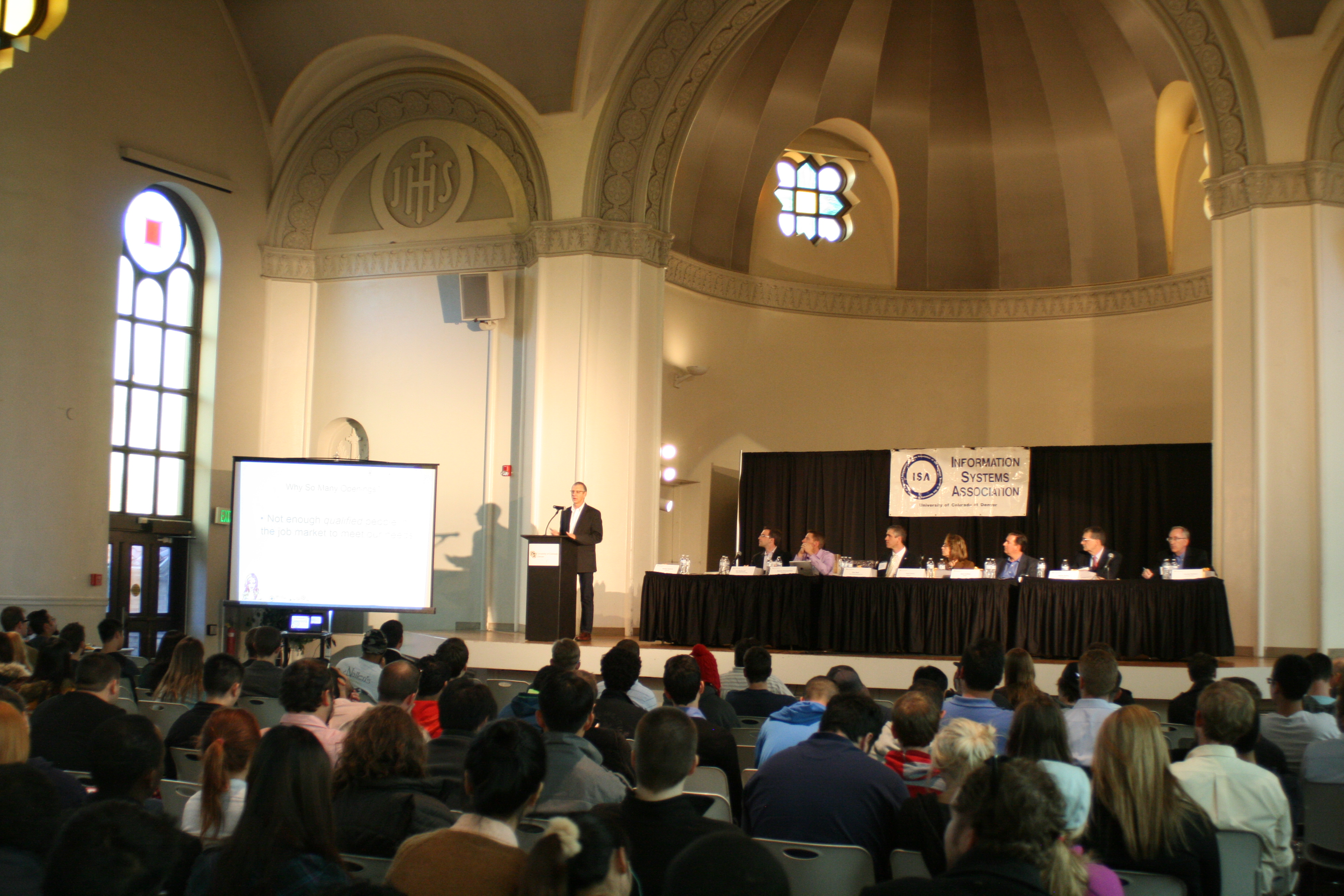 Before the panel began, co-presidents of the CU Denver chapter of the Information Systems Association — Michael Carlisle and Riya Deotale — encouraged students to join the organization, which sponsored the event.