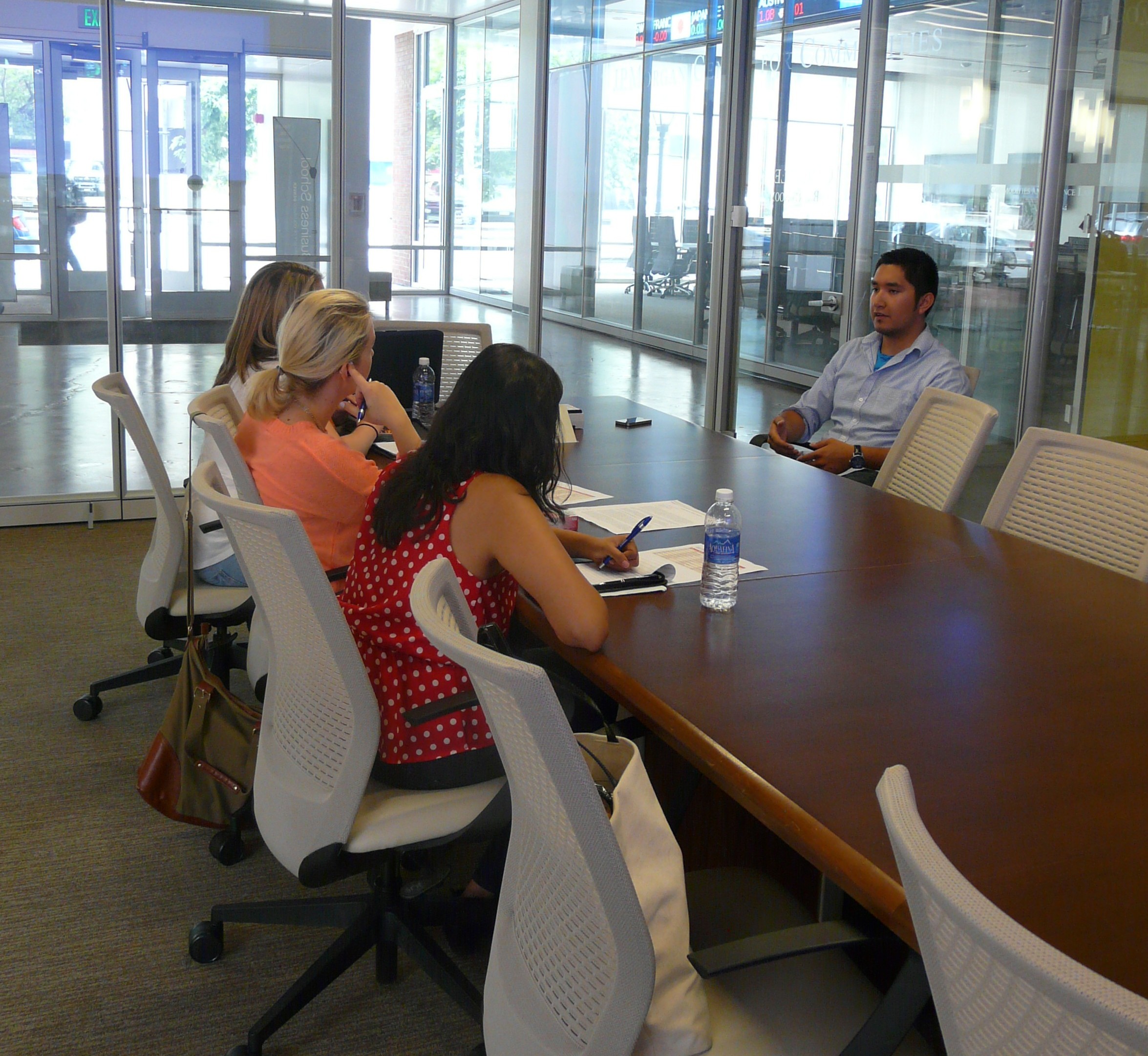 During the four hour college call in the Cordillera Board Room in the lobby of the CU Denver Business School, the Shark Tank associates watched pitches from CU Denver students and alumni. Presenters pitched ideas from mobile applications to barbeque grill knobs.