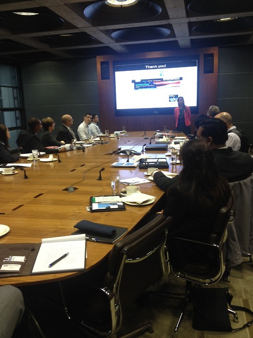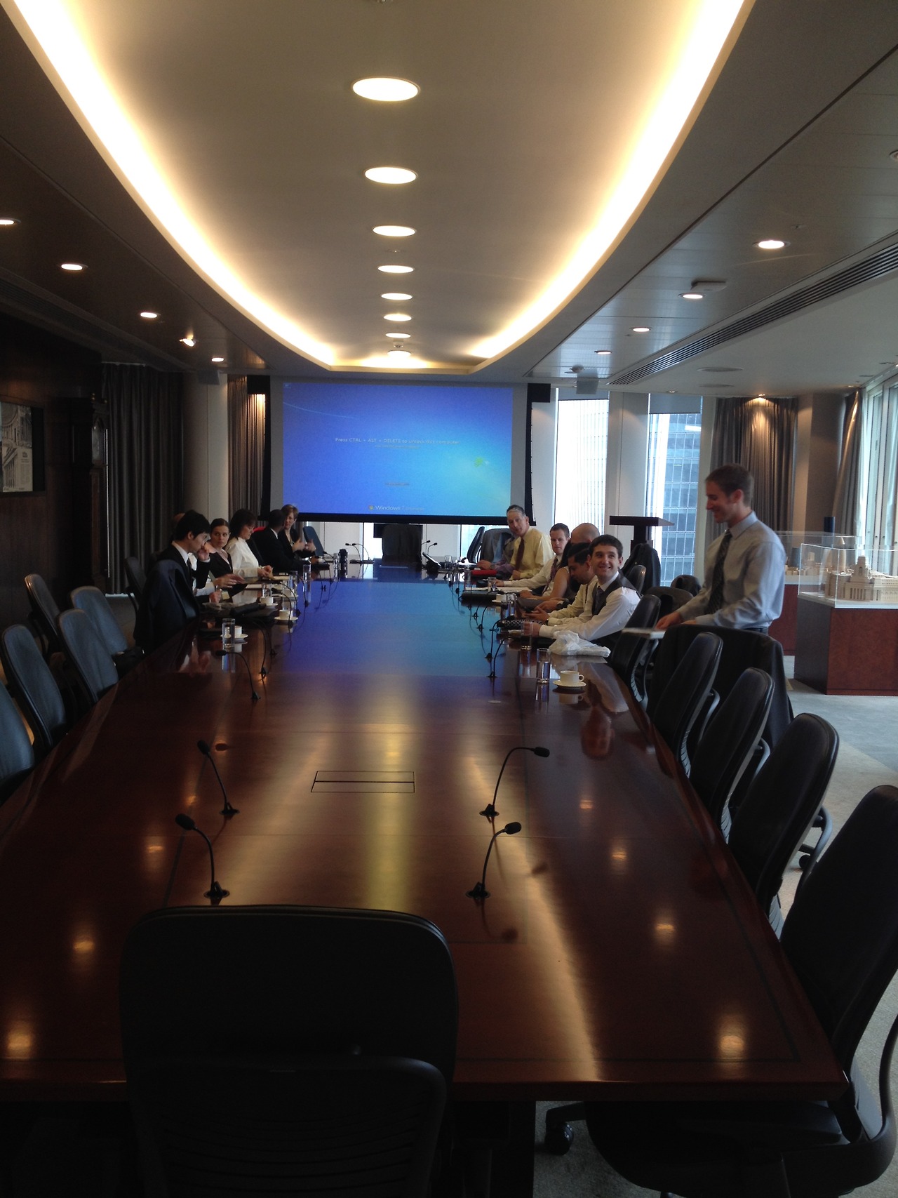AIG representatives set up the boardroom before presenting about risk management and insurance.