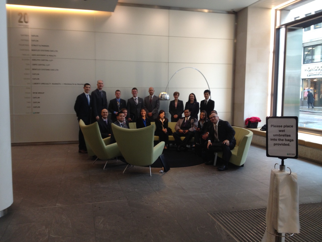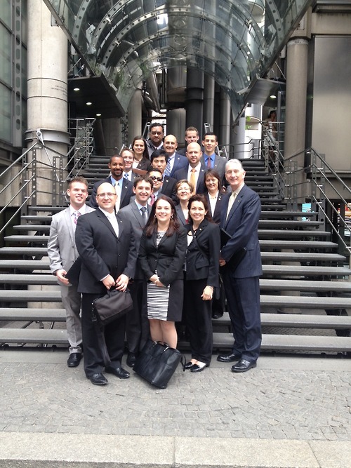 University of Colorado Denver Business School Risk Management and Insurance students returned to Denver after studying abroad. The students spent a week, May 25 through May 31, in London visiting and attending presentations from insurance brokers, risk management companies, Lloyds of London, and reinsurers to learn how risk is transferred globally.