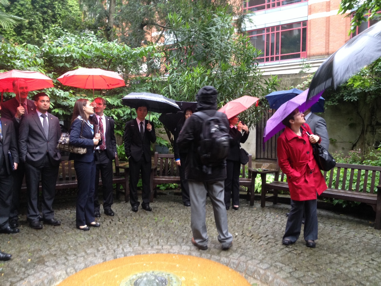 Gavin Webb leads the RMI class on a walking tour of the financial district in London.