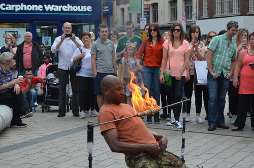 During a tour of Belfast, the students spotted a street performer dancing with fire