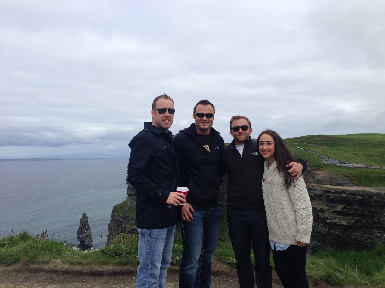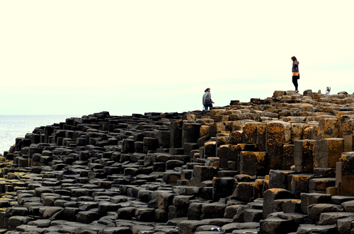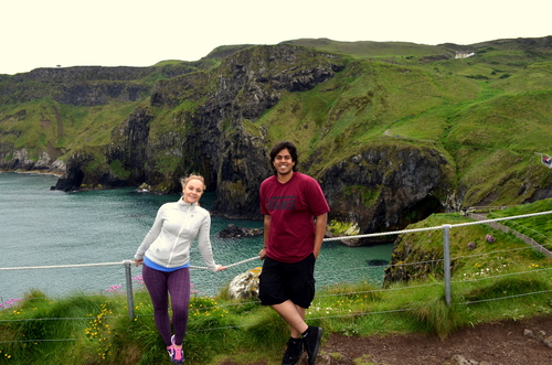 Two students pose near the sheer cliffs of Northern Ireland