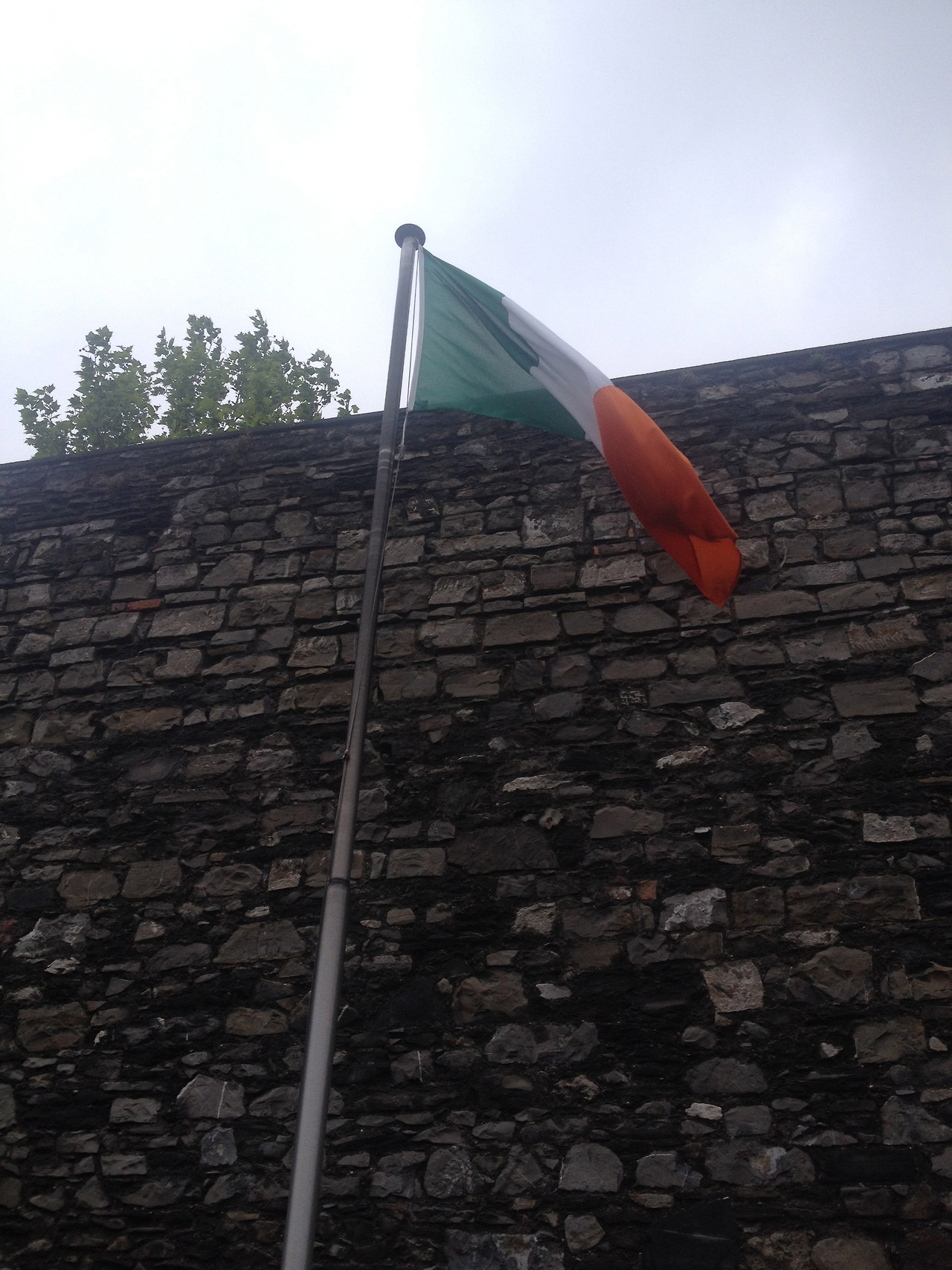 Irish flag outside prison used to hold leaders of rebellion during Irish War of Independence