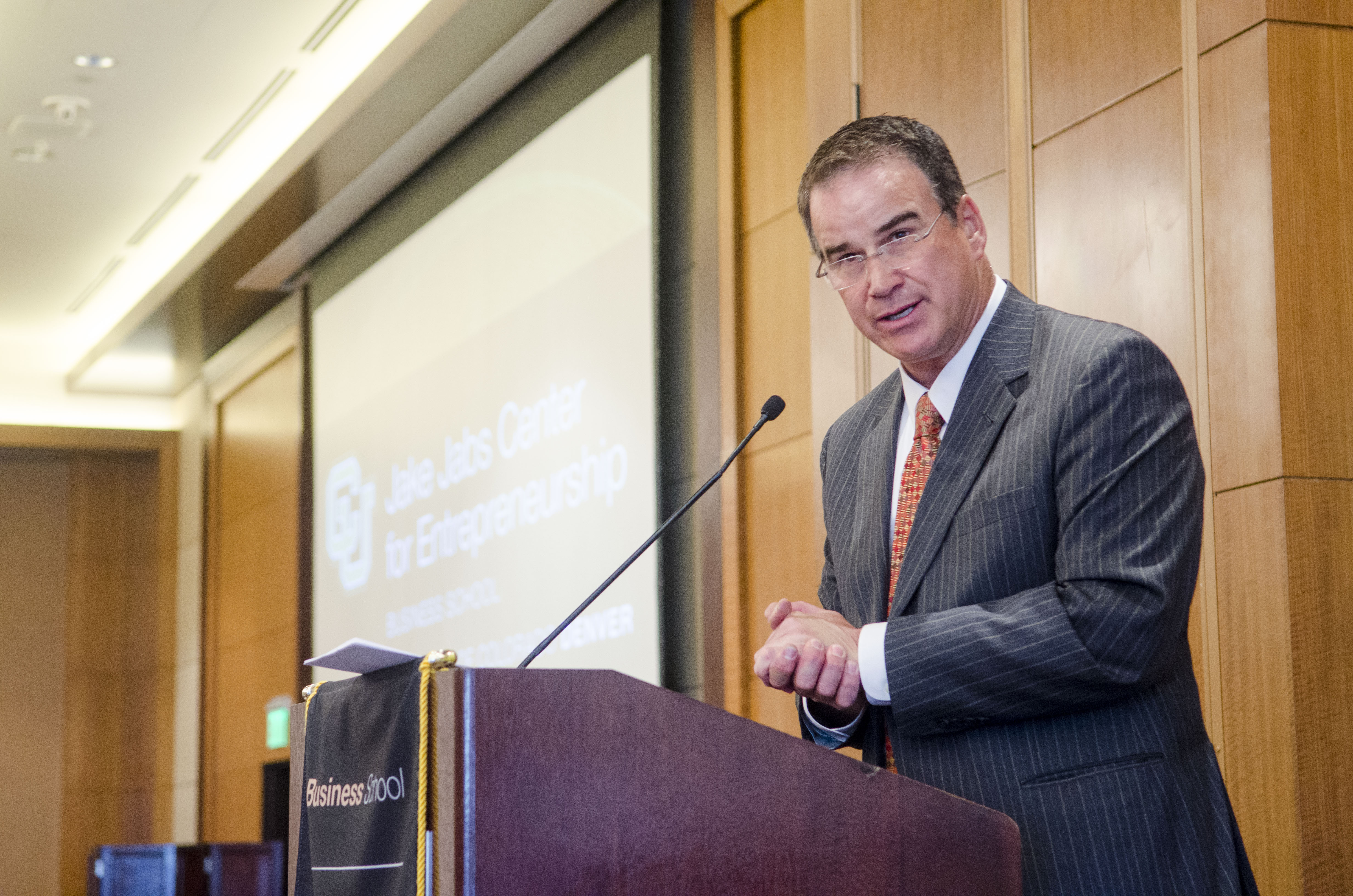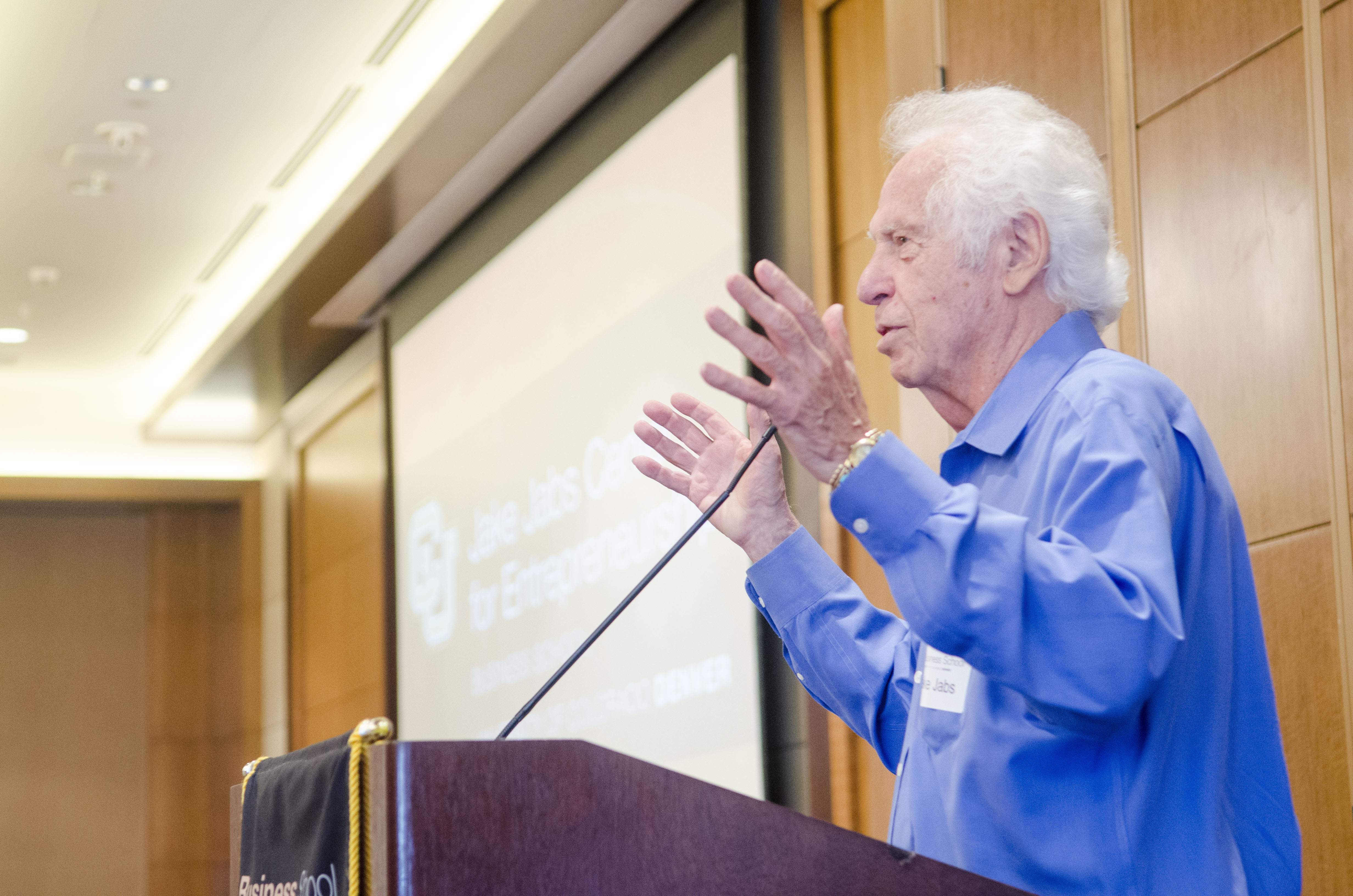 The event, emceed by Jim Benemann of CBS4, featured a talk by Jake Jabs, owner and CEO of American Furniture Warehouse. Last year, Jabs donated $10 million to the Business School, the largest donation ever to CU Denver. “How do you promote a business these days? You need a good building, a good sign and you need to be all over social media,” Jabs said. “The advertising industry is fragmented so you need a great website, you need to be on Facebook and Pinterest and Twitter.”