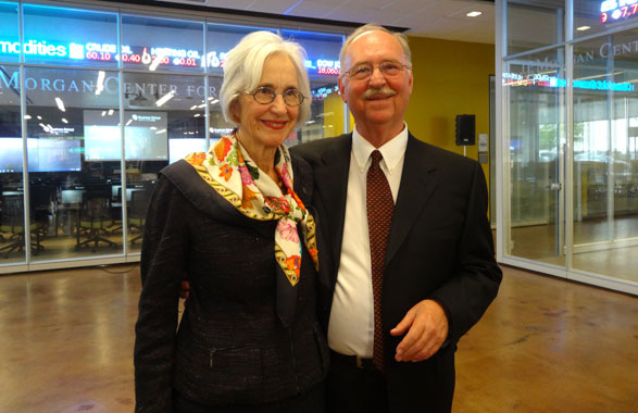 Other accolades came from Benson, who said he’s looking forward to seeing what enterprise Ambron embarks upon in “retirement”; CU Denver Chancellor Jerry Wartgow; Cliff Young, professor and associate dean of faculty for the Business School; and Gary Kochenberger, professor and co-director of Business Analytics, who has been named the school’s interim dean while a national search for a permanent dean continues. A video that highlighted Ambron’s tenure was shown on the TV screens that line a wall inside the J.P. Morgan Center for Commodities—one of the many academic programs and centers launched while the former Apple executive was dean.