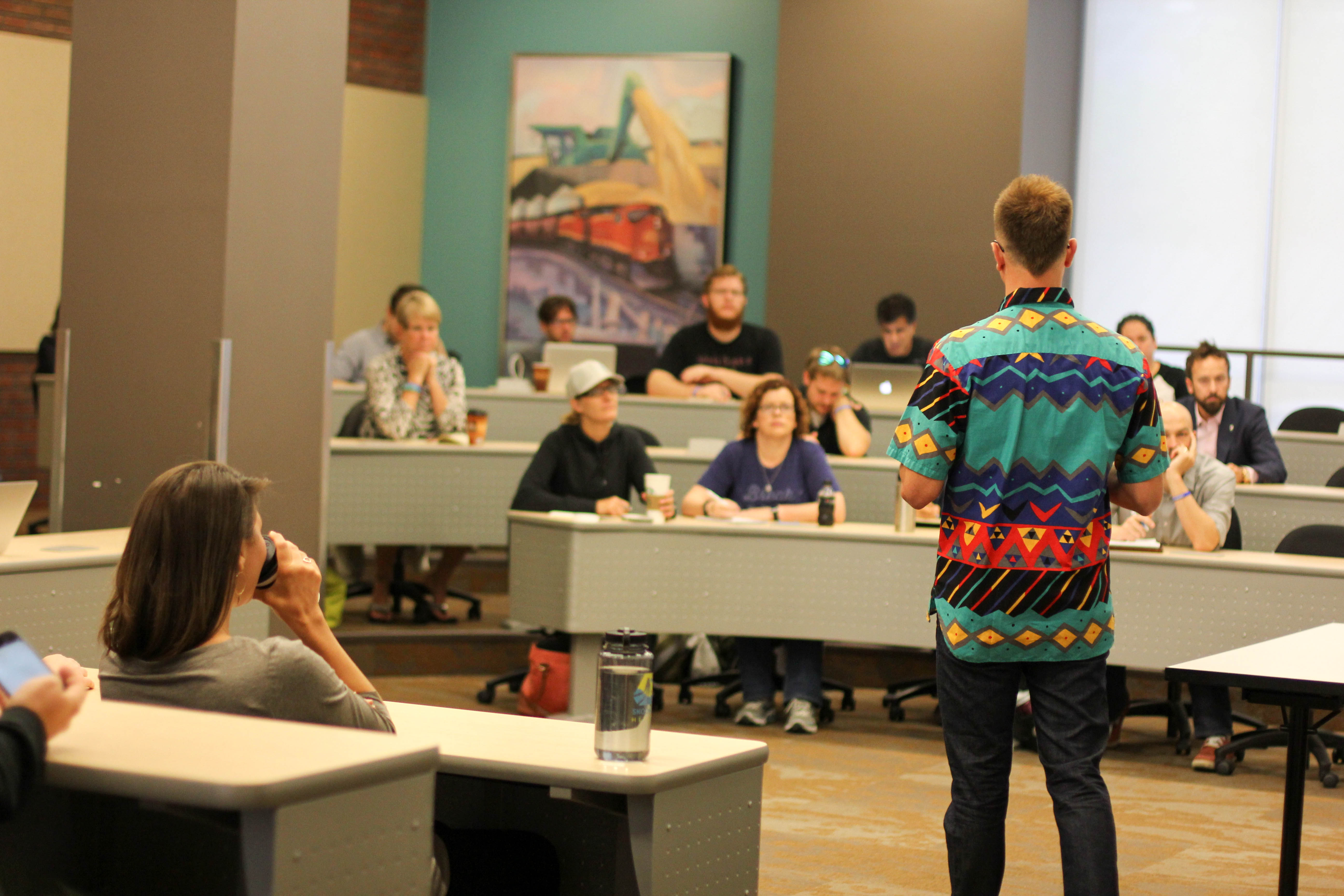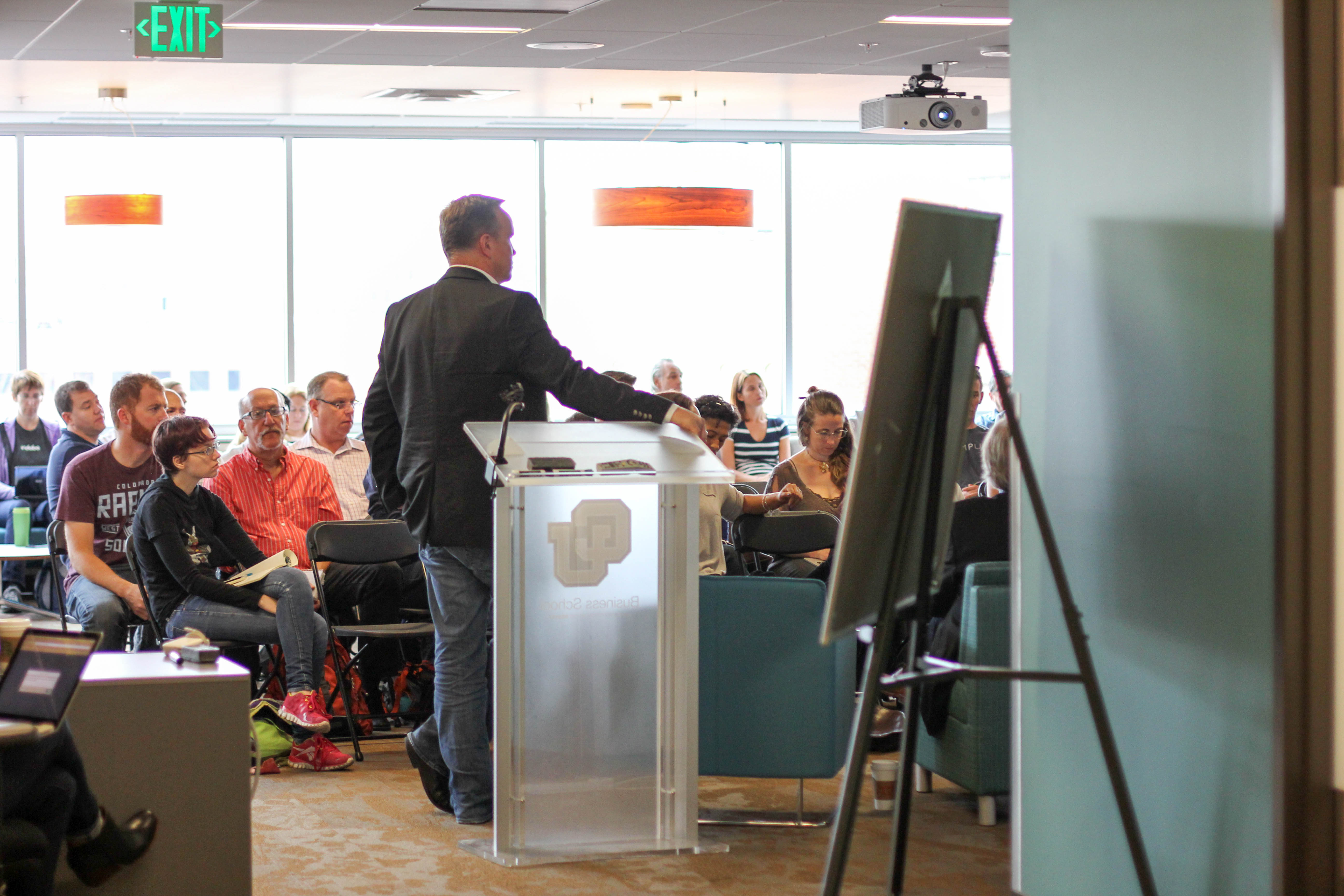 The free sessions included workshops, keynotes, and panels, and took place in different venues all located downtown. The Jake Jabs Center for Entrepreneurship was proud to host over twenty of the events here at the CU Denver Business School this year, and had over 2,000 people attend throughout the week. Several of the events at the CU Denver Business School were standing room only.