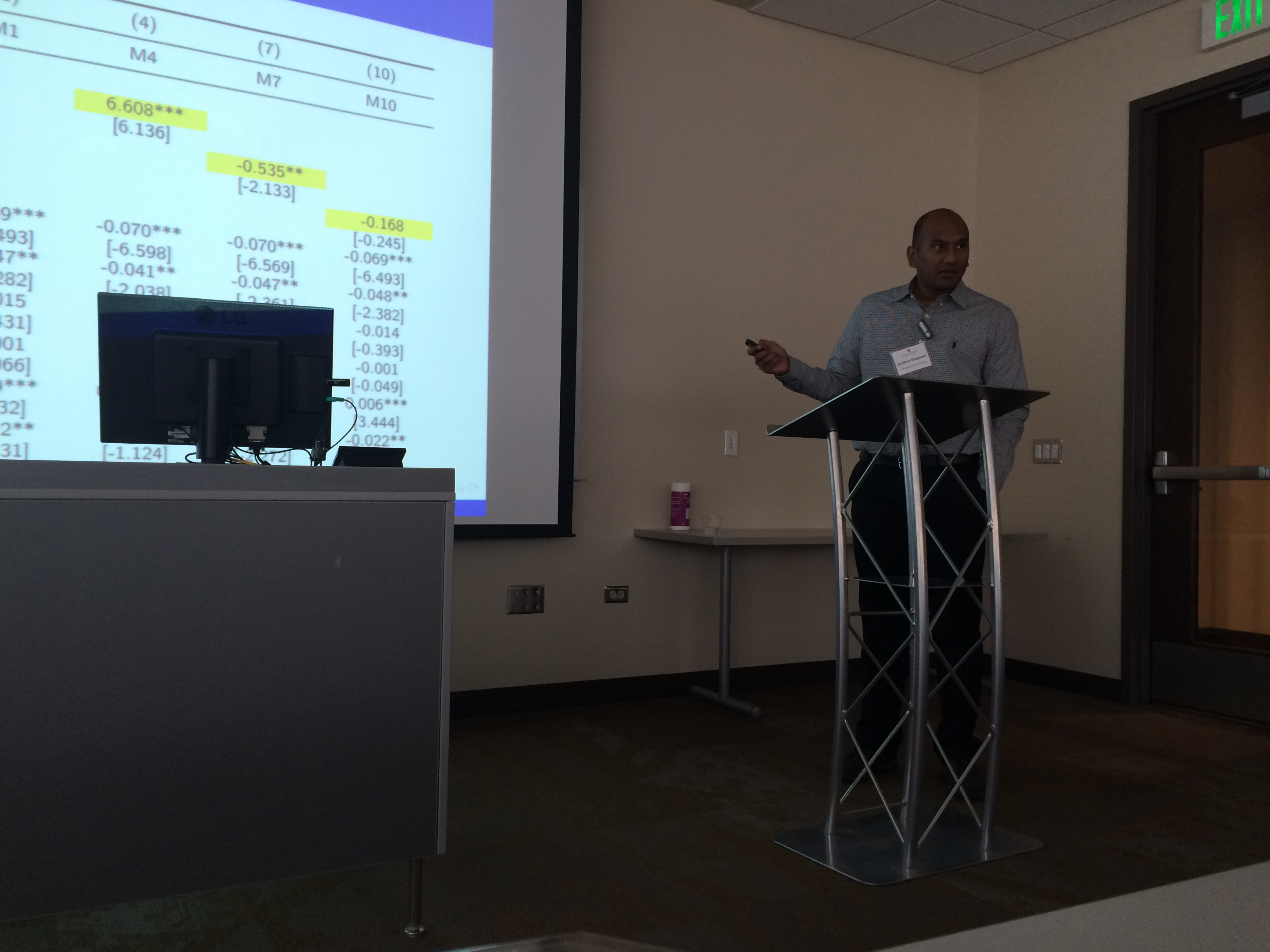 The spring 2016 Front Range Finance Seminar was hosted at the CU Denver Business School on Friday, April 15th, 2016. Co-organized by Assistant Professor of Finance Yosef Bonaparte and Associate Professor Yufeng Han, the Front Range Finance Seminar was re-instituted this year bringing the Front Range financial university community together for the first time in five years. The Front Range Finance Seminar is a unique forum for finance faculty in the Front Range region to exchange research ideas and receive feedback in a timely manner and in a collegial environment. Previous seminars were held at CSU (September of 2010), University of Wyoming (April 2011) and CU Denver (September 2011). The 2016 seminar’s goal was to bring new research to the table and initiate thoughtful discussion. Participants took part in the presentations and discussions and a high-quality keynote speech was delivered by Professor Russell Cooper about international household finance trends. Over 20 professors from universities that include the University of Denver, University of Colorado – Boulder, University of Colorado – Denver, University of Colorado – Colorado Springs, and Wyoming State University were in attendance. The hope is for this experience to enhance research and education in the Front Range.