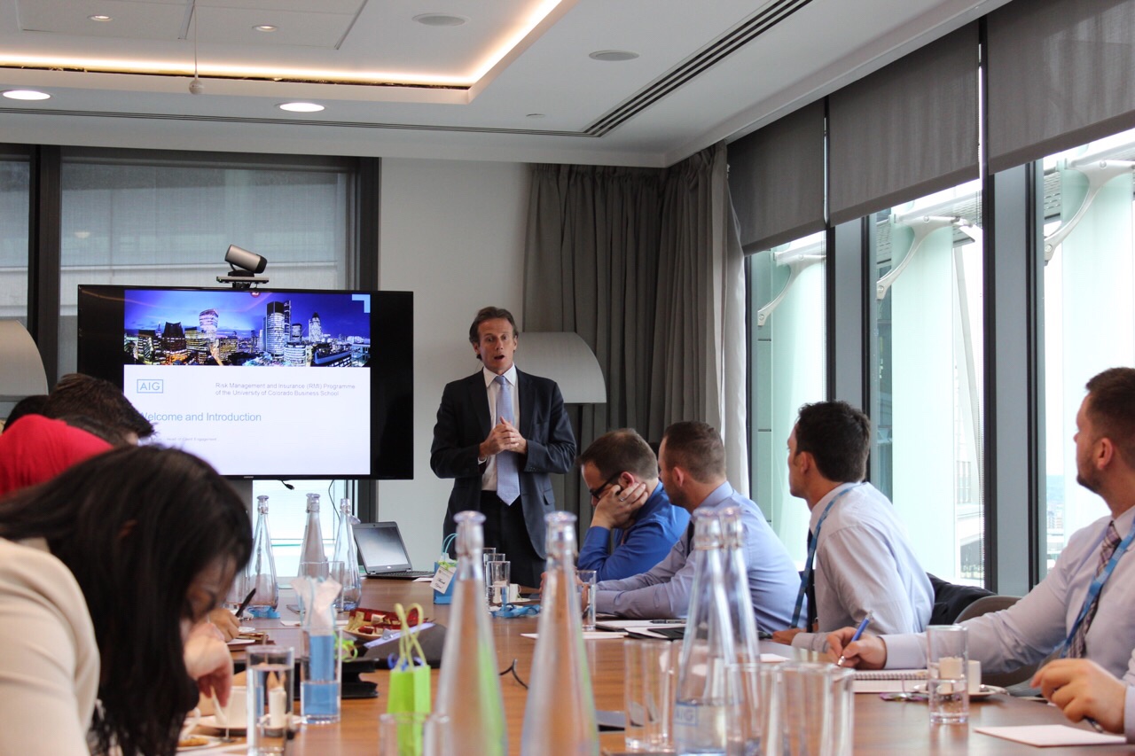 Since 2014, The CU Denver RMI program has offered a unique Global Risk Management Maymester course to develop the expertise to understand and contribute to challenging risk solutions. This June, 17 undergrad and graduate RISK students participated in the two-week intensive coursework at CU Denver Business school. For the third week, students travelled to London, where they met with global insurance leaders and companies, such as Lloyd’s of London, AIG, JLT Specialty, Bloomberg, and Capsicum.