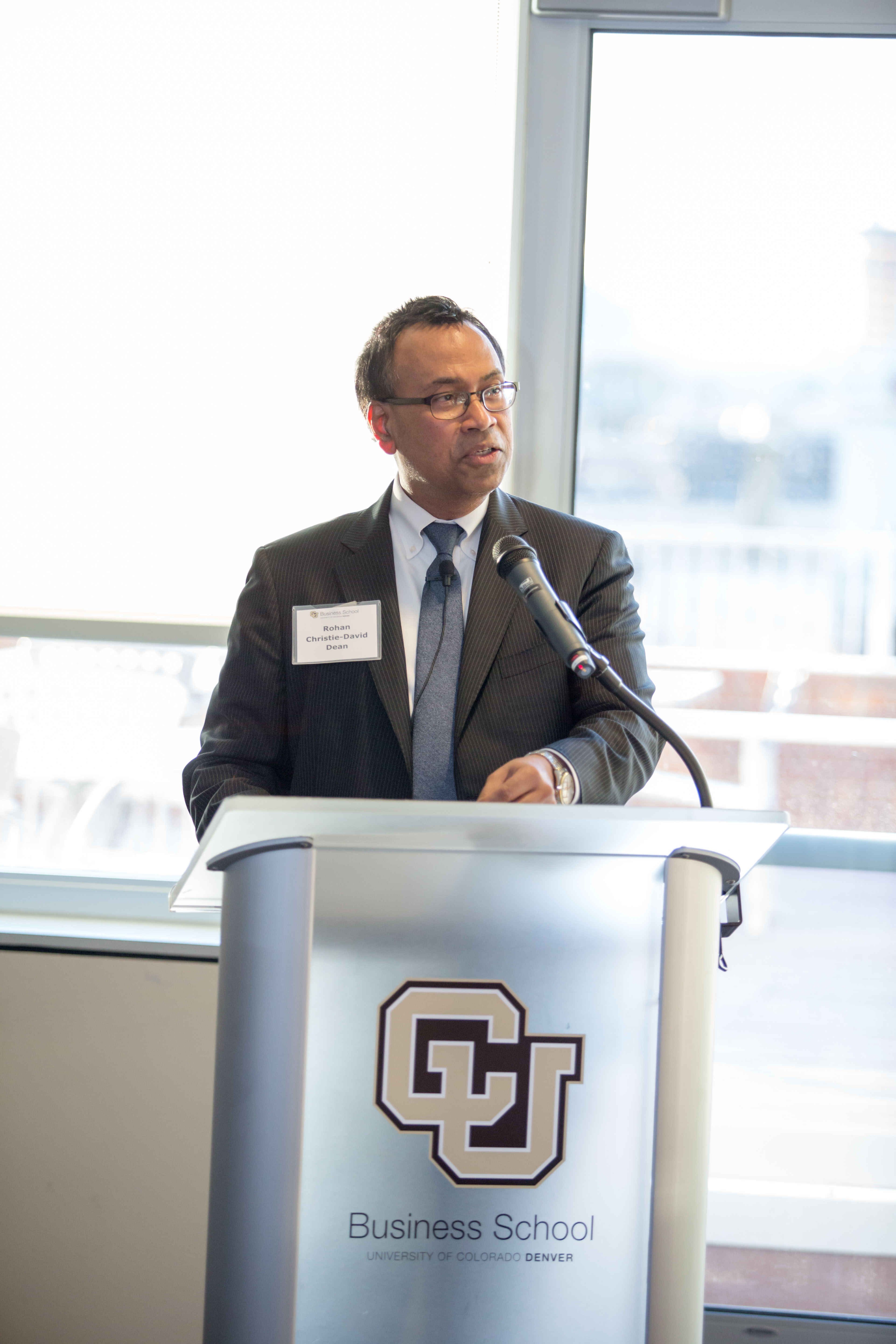 On September 7, members of the Denver business community gathered to welcome Dean Rohan Christie-David to the CU Denver Business School. Reception guests, consisting of elected officials, CU Denver leadership, Board of Advisor members and business executives, listened eagerly as Chancellor Dorothy Horrell detailed Dean Christie-David’s impressive background and dynamic leadership style.