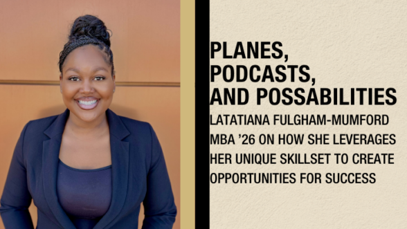 Latatiana Fulgham-Mumford MBA ‘26 has always been a jack-of-all-trades. As a child, she saw herself in a multitude of careers, including those of a therapist, a CEO, and a president. “My dream job was everything. I was always multifaceted.” Her entrepreneurial drive, coupled with her ability to adapt to life’s hurdles and use those challenges as catalysts for evolution, generated a varied resume and a multimedia approach to business.